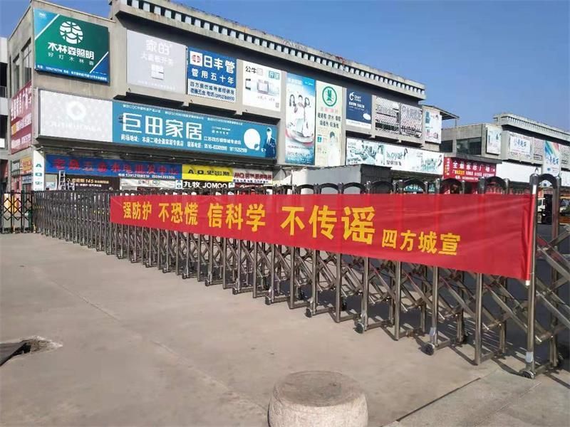 地處鎮(zhèn)區(qū)交通鬧市區(qū)的四方建材城,及時拉出防控主題宣傳橫幅,組織防控小組人員宣傳上級通知精神,形成強大輿論聲勢,助力政府指令落實。公司值班人員督促配備醫(yī)用口罩、洗手液、消毒液等安全防護用品以及紅外線體溫測試儀,要求值班員工佩戴口罩,企管及時采購、噴灑高濃度酒精、消毒液,確保全公司無死角消毒處理。利用公司“四方文化交流群”、“四方高管工作交流群”持續(xù)推送疫情防控政策指令、防控知識等動態(tài)內(nèi)容,加強公司全員居家隔空溝通交流,確保思想高度統(tǒng)一和正確的宣傳輿論導(dǎo)向。